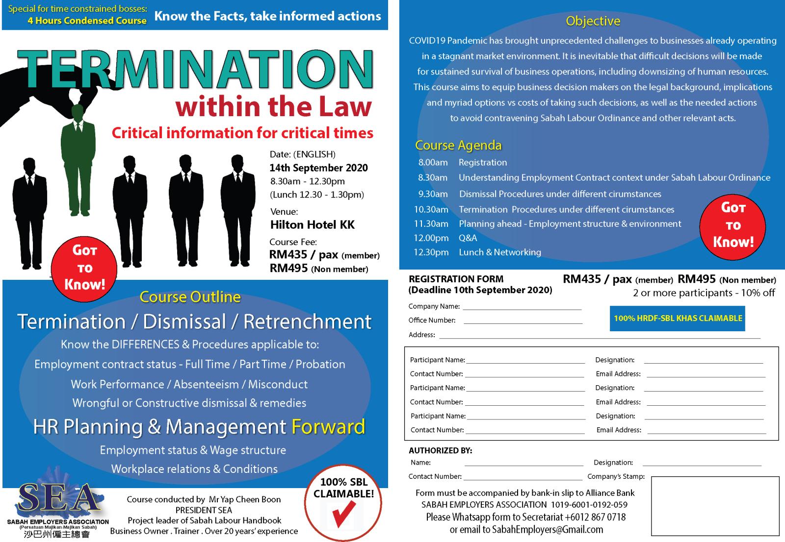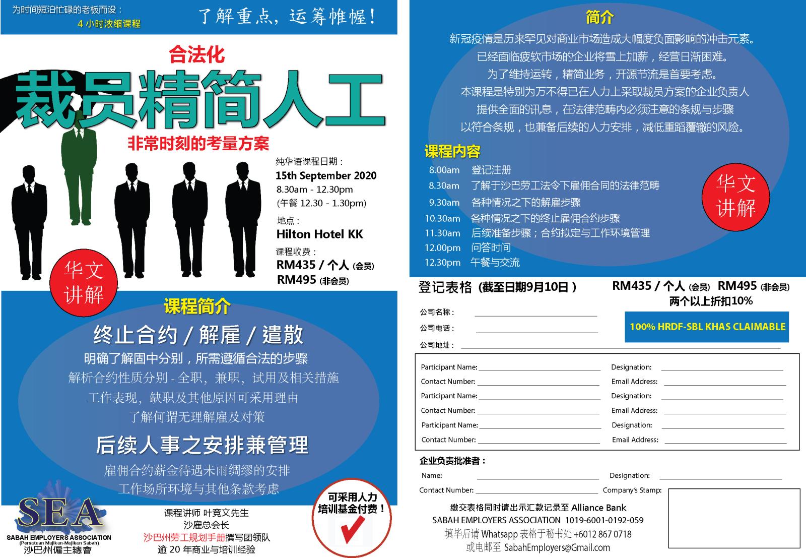 Date: 15th September 2020 Time: 8.30am to 12.30pm Venue: Hilton Hotel KK