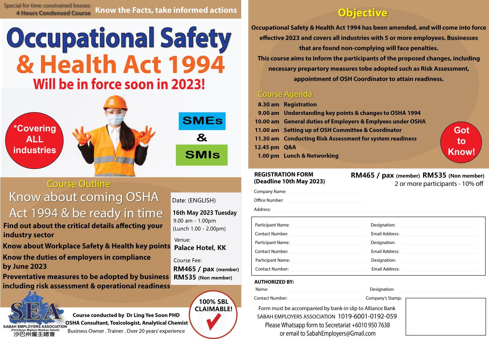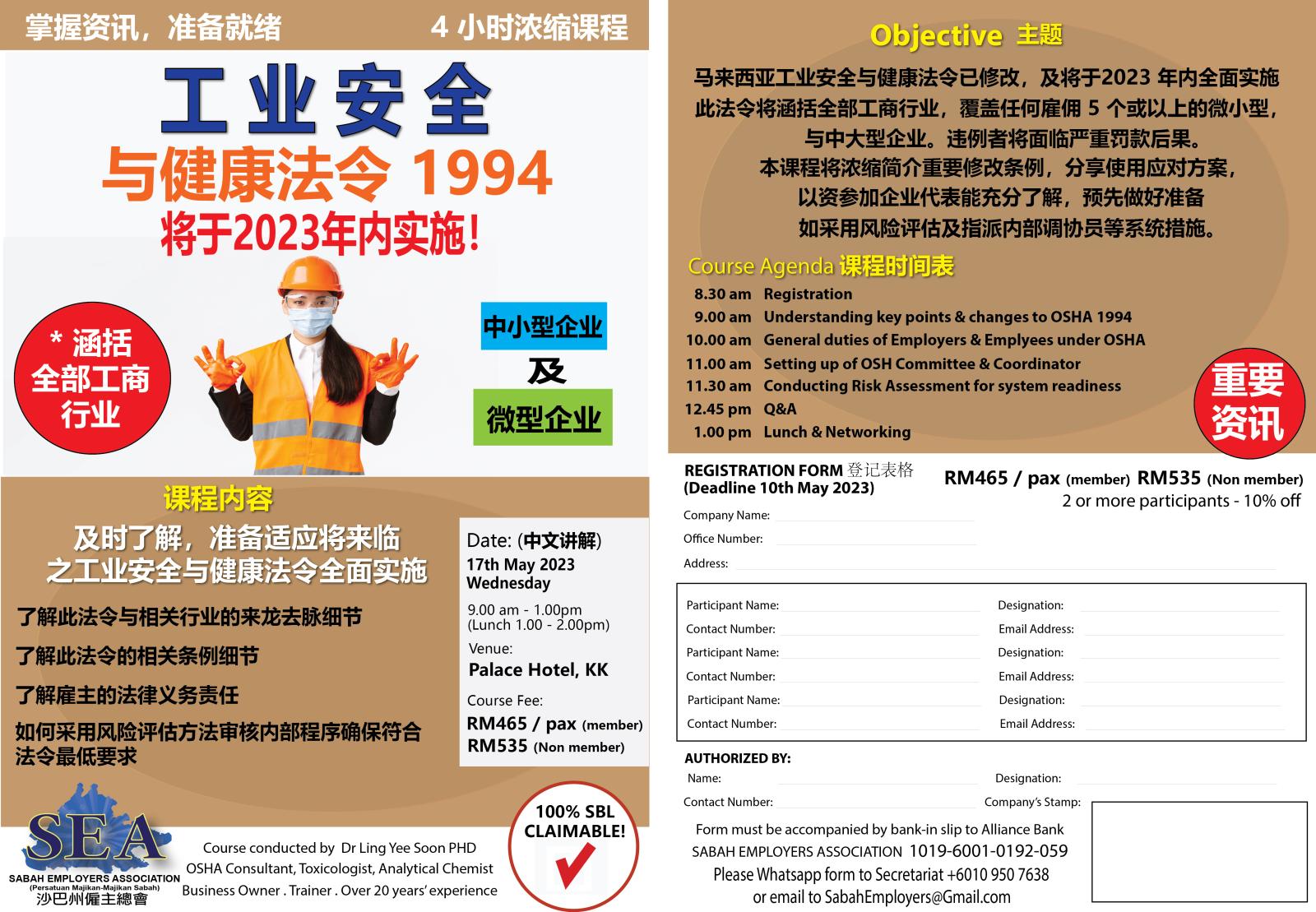 Date: 16th May 2023 (English) Date: 17th May 2023 (Mandarin) Time: 9.00am to 1.00pm Venue: Palace Hotel, KK